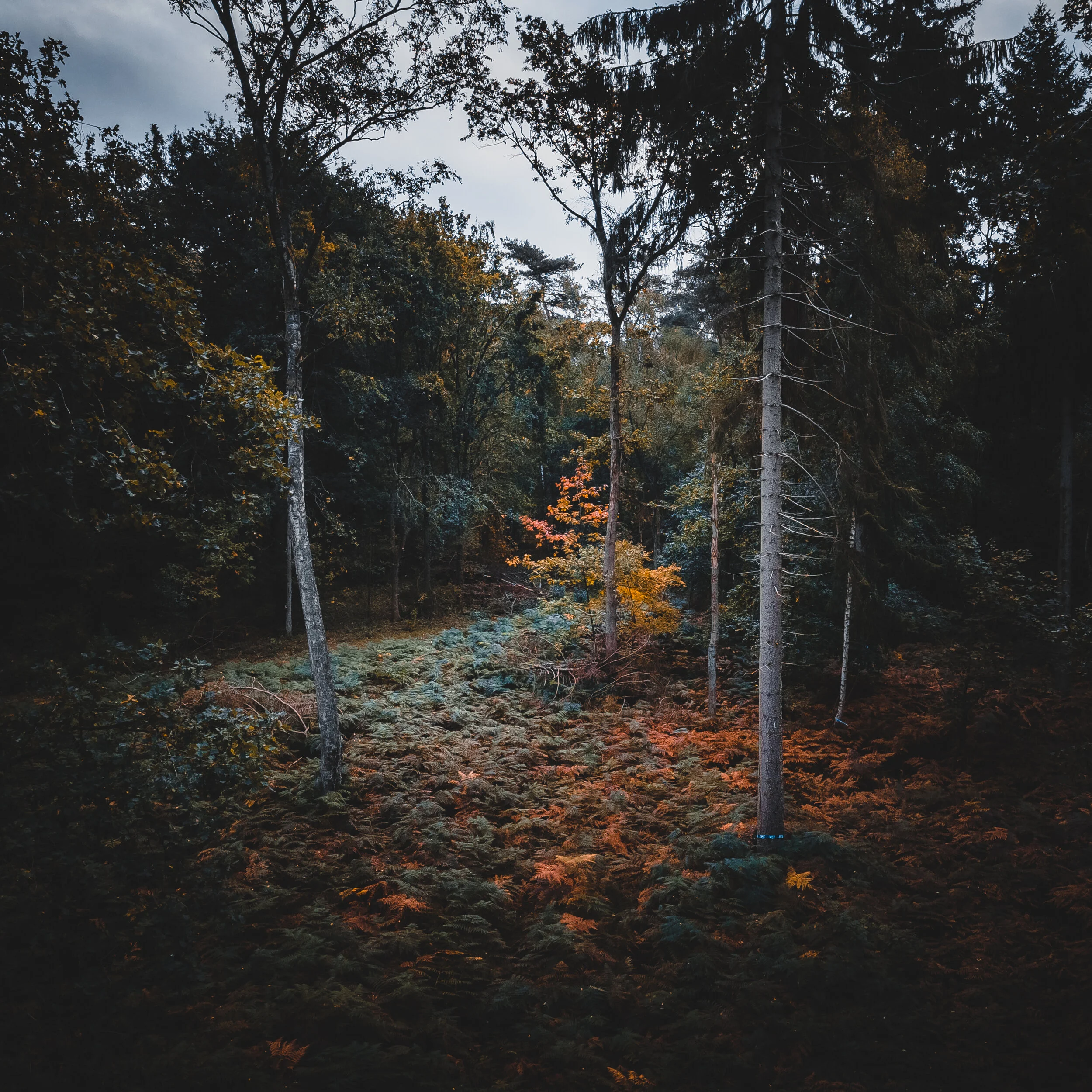 But for this shoot I went and only used my drone this time. Trying to find and shoot some compositions from beneath the treetops and a little lower to the ground. It was quite dark here and there still. Since I was out in the early morning. Luckily my DJI Mavic Air 2 shoots decent HDR images. So I went and took a 5 bracket shot, and merged them in Lightroom on the computer in post processing. This gave me a larger dynamic range towards the challenging lighting conditions.