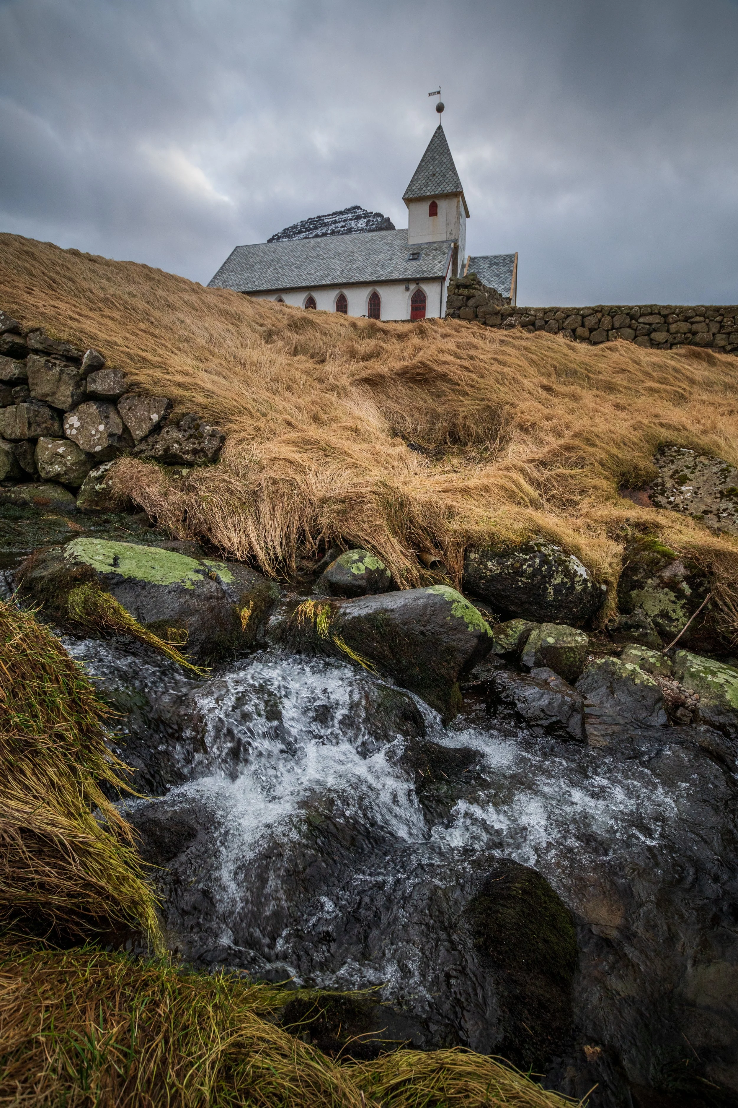 Viðareiði is a true paradise for the landscape photographer. Walk down by the church towards where the ocean waves are crashing on the rocks for some dramatic seascapes. Keep in mind though that the ocean can get very wild and rough here. Often the waves splash all the way up into town. So be sure to judge and respect the weather and conditions the right way.
